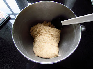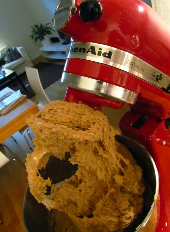 Nej, det var det inte. Jag undrade så mycket över deghelvetet så jag tänkte att jag för en gångs skull skall fråga Sara om receptet. Jag har ändå läst hennes blogg nästan sedan hon började skriva den och var ju det sättet en "gammal bekantskap" utan då att känna henne för fem penni. Nå frågade gjorde jag och beskrev hela mitt problem i mitt inlägg och postade det på websidan. Senare på eftermiddagen började jag fundera på receptet, för min chef bad efter det och jag läste det på nytt och löste faktiskt helt själv mysteriet med klisterdegen. Jo, det stod nämligen att man ska sätta 1100 gram mjöl i receptet, dvs 1,1 kg. Det är rätt mycket det. Jag, mästerbagaren, har i all min håsis satt 11 dl mjöl. En deciliter mjöl är ca 60 gram, så med enkel matematik blir detta 660 gram mjöl. Så drygt hälften av all det som skulle dit. Ja så nu undrar jag att ska jag skriva tillbaka på Saras blogg att jag gjorde ett misstag - eller fortsätta med den nuvarande taktiken som är att ligga lågt? Mitt samvete röstar för alternativ ett medan jag i praktiken har fullföljt alternativ två. Nå goda kringlor blev det och lite mer lättformade skulle de säkert ha varit om jag haft tanken med i bakandet. Bättre lycka nästa gång, hehe!
