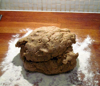 Förra veckan testade jag ett av hennes recept som hon skrivit om någon vecka innan. Receptet var på Saffranskringlor. Jag gjorde degen en tidig kväll, stack iväg på ett glöggparty och kom hem och bakade kringlorna. När jag gjort degen tyckte jag den var faktiskt jätte bra och den smakade underbart. Ganska konstigt att bulldeg skulle smaka så gott, men det gjorde denna. När jag sedan bakade av kringlorna visade de sig vara mycket svårbakade. Det var meningen att man skulle kavla degen till en rektangel och breda på fyllning som bestod av smör och marsipan. Därefter skulle degen vikas i tre delar och skäras i avlånga bitar som skulle snurras och fästas som kringlor. Det här var inte det svåra utan jag tyckte nog att det lät ganska så straight forward. Det "svåra" kom när degen fastnade något förbannat i bakbordet trots att jag lassade på med mjöl för att undvika att den fastnade. Jag har bakat ett och annat bröd och därtill några bullar så jag vet nog hur behandla en deg, men jag var helt with stupid med detta exempel. Nå summa sumarum, det blev inte helt formriktiga kringlor men något slags bakverk nog och som tur var smakade de gott i varje fall. Det blev så mycket av dem att jag tog av dem till jobbet där de gjorde succé. Slutet gott allting gott...?