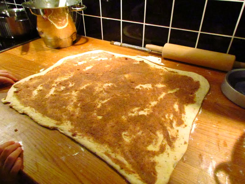 Lilla E var super intresserad av bakandet, kavlandet och rullandet. När vi skulle se på videon hur man rullade bullarna blev hon superintresserad av det med - och som dagens barn hittade en mängd andra videon på youtube om bakning.