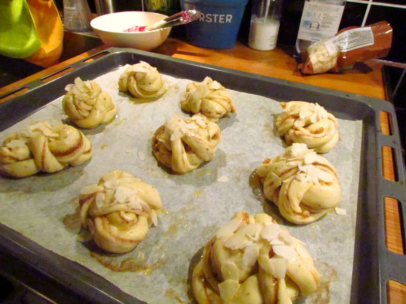 Måste säga att bullarna blev supergoda och fyllningen var också bra. Jag trodde lite att en sockrig fyllning tillsammans med mandelmassa skulle resultera i ett söthetshelvete, men icke. Gott var det! Resten av kvällen spenderades med att mumsa bullar och dricka mjölk till. Nästan ett måste med bulla ju! Någon vecka till är mitt kök ur bruk, sedan hoppas jag på nya bak och ny inspiration i köket. Få se om det blir ett till gästspel hos grannarna innan dess.