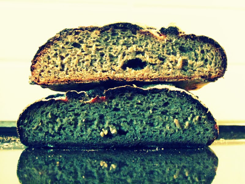 Mina två första bröd blev lite råa inuti, men det tredje blev fint. Kanske snäppet mörkt, men GOTT var det. Jag tror jag ska göra ett till försök med degen här ganska snart igen. Är inte helt hundra nöjd med bröden fast smaken var super, utseendet var grejen som inte blev så bra.