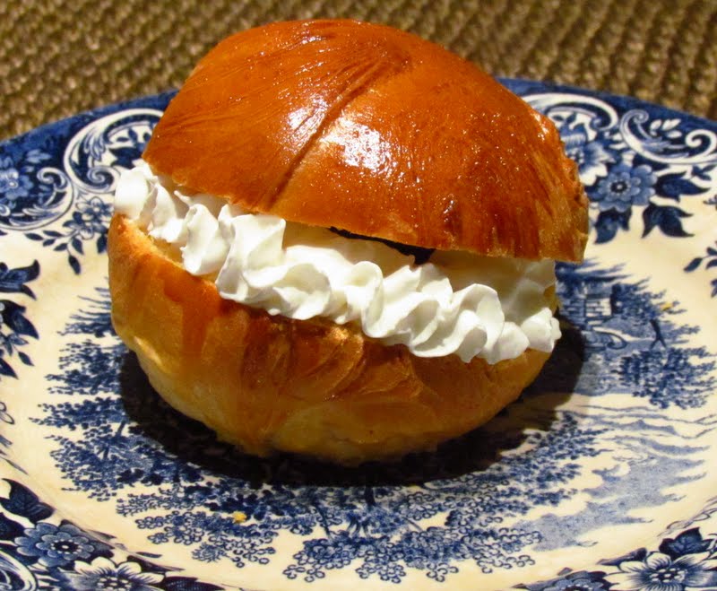Av alla säsongskakor och -bakelser är fastlagsbullen min absoluta favorit och som tur är jag inte ensam om detta. Bland mina kompisar är en och annan mycket förtjust i fastlagsbullen, vänskapligt nog kallad f-bullen i vår vänskapskrets. För flera år sedan gjorde vi en "undersökning" och testade en hel del f-bullar som erbjöds i stans caféer. Jag minns inte direkt om vår undersökning hade någon egentlig statistisk signifikans, men resultatet av undersökningen var i alla fall att Café Briossi på Kalevagatan 9 i Helsingfors bjöd på de bästa bullarna. Jag undrar om vi borde uppdatera vår undersökning någon gång...? Ett annat år skickade vi en f-bulle med Fedex till vår kompis Kati, som vid det skedet bodde i Danmark. Dessutom kom idén huvudarkitekt (inte jag alltså) också på den utmärkta idén att Kati fick själv montera ihop bullen, dels för att hon skulle få välja sin egen favoritfyllning och för att hon faktiskt skulle kunna äta bullen. Vad gör man inte för f-bullar?