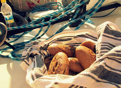 Detta var vår lunch på midsommarafton före den mera traditionella (men mycket goda) sillen, den rökta fisken från Börje i Nagu och nypotatisen. Midsommarfirandet skedde "traditionsenligt" på ljuvliga Hjortö i Korpo skärgård i gott sällskap. Och enligt tradition fick var och en, en "matnakki", dvs en måltid på sitt ansvar. Mitt ansvar var lunchen på midsommaraftonen. Jag har velat testa på att laga pizza jätte länge, men det har inte blivit av förrän nu. Jag tog med surdeg ut till skärgården, men på dagen D blev jag chicken och körde med jäst istället. Jag tog det säkra för det osäkra. Min tanke med pizzorna var att en gasugn värmer underifrån och det är superbra för pizza, men måste medge att jag var trots denna fina tanke lite osäker på om detta skulle bli bra. Helst ska man ju ha en pizzasten att baka dem på, men jag hade nog ingen plan på att dra mitt stenåbäke till Korpo. Snacka om tung packning då liksom... Min "bara det nödvändigaste"packning var tung nog utan en helvetes sten ännu.