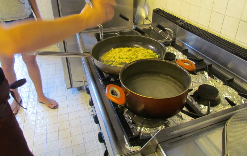 | Kocken lägger finishing touches på maten |
