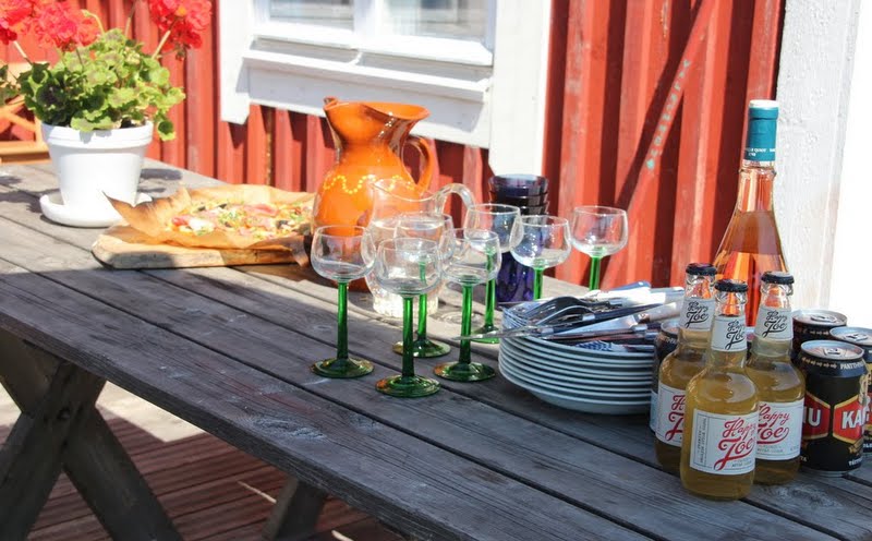 Som tur har vi vänner som Anderssons på Hjortö. Det är alltid lika underbart att få åka dit varje sommar. Ett besök till väntas ännu i slutet av denna månad. Det bästa med veckosluten där är sällskap av goda vänner, god mat, goda drycker, vackert väder (just det, alltid). Alla gånger jag varit där hjälps vi åt och lagar mat och ibland känns det som att vi flyttar oss från frukostbordet till att börja förbered lunchen med en sväng via bastun till middagsförberedelser. Men det är inget fel på detta. Vad är bättre än att få laga mat med vänner, snacka en massa goja, dricka drinks (viktigt!) och vara avslappnad (vilket varar ca en minut för sen har redan någon av ungarna slagit sig på nåt, hunden jagar höns eller what not, fniss...).