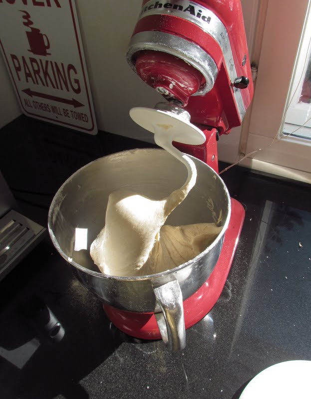Värm surmjöken till 37 grader i en kastrull. Sätt en stektermometer i kastrullen direkt och om du har en termometer som alarmerar sätt det på. Surmjöken värms verkligen snabbt till denna temperatur. Smula jästen i bunken och häll den uppvärmda surmjölken därpå. Rör om så att jästen löses upp. Sätt med saltet och sirapen. Häll i rågmalten, mjölet och kliet och blanda allt till en rätt kladdig deg. Jag körde min deg i degblandaren men det kan hända att det inte ens behövs.